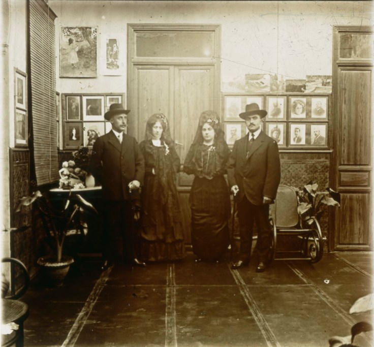 En estas tres fotografías se incluye un autorretrato y dos escenas familiares, la primera, de Pura besando a su sobrino Arturo. La segunda es una foto de la boda de Julio y de Pura, que viste para la ocasión un traje de novia negro, pues era la costumbre vestir de luto cuando algún familiar cercano había fallecido, caso de su madre, quien murió en 1902.