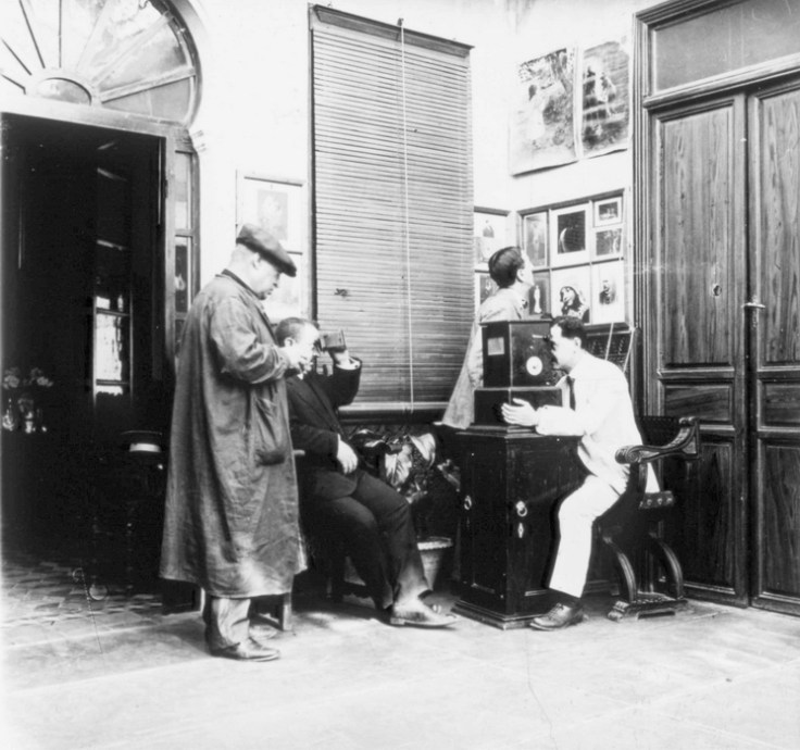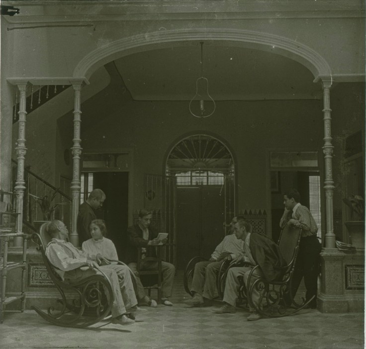 Las ventanas que daban al patio de cristales, a menudo fueron escenario para el retrato y en algunos casos de personajes ilustres que visitaron este templo de la fotografía, es el caso del universal pintor levantino Joaquín Sorolla, quien aparece en la imagen central retratado en barroca composición.
