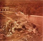 En la mayor parte de estas fotografías vemos un concurrido lavadero donde las mujeres, arrodilladas sobre los baleos e inclinadas sobre las losas de piedra sobre las que colocaban sus piedras de lavar hacían la colada mientras comentaban los chismes, o como por aquí se dice, «churreteos», pues estos lugares no sólo eran lavaderos sino que también eran concurridos mentideros. Las redes sociales de antaño.