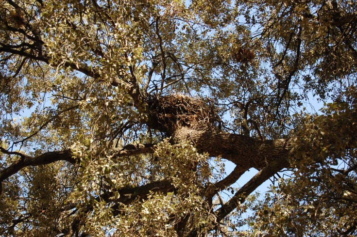 Durante el verano de 2006 un bello ejemplar de águila real había anidado en nuestra encina. Una tarde, Pedro escuchaba un sonido extraño que procedía de una balsa de riego cercana, así que se asomó y comprobó que se trataba de los graznidos que emitía el águila que estaba atrapada en el agua.