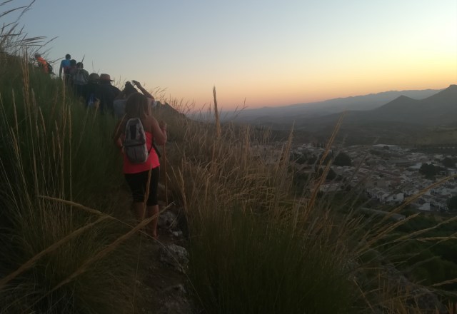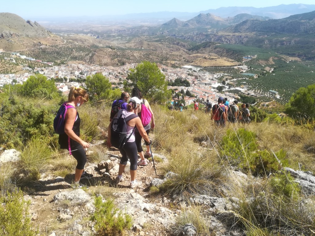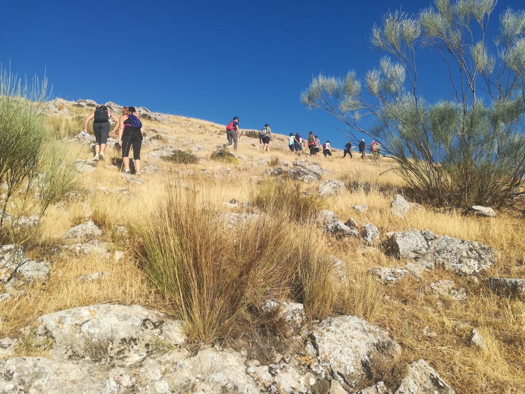 El pasado 19 de agosto, dentro de las rutas de senderismo organizadas por el Ayuntamiento de Cabra del Santo Cristo y con la inestimable colaboración de Salvador Gudú Gutiérrez se programó ésta ascensión al cerro Aprisco. Vaya por delante nuestro aplauso a esta iniciativa que permite conocer e interpretar el entorno más cercano a cabrileños y visitantes de la mano de una de las personas que mejor lo conoce. Así que las siete de la mañana fue la hora fijada para la salida de esta ruta circular, que con una longitud total cercana a los 14 kilómetros y con más de 600 metros de desnivel, puso a prueba a los 25 participantes que se aventuraron.