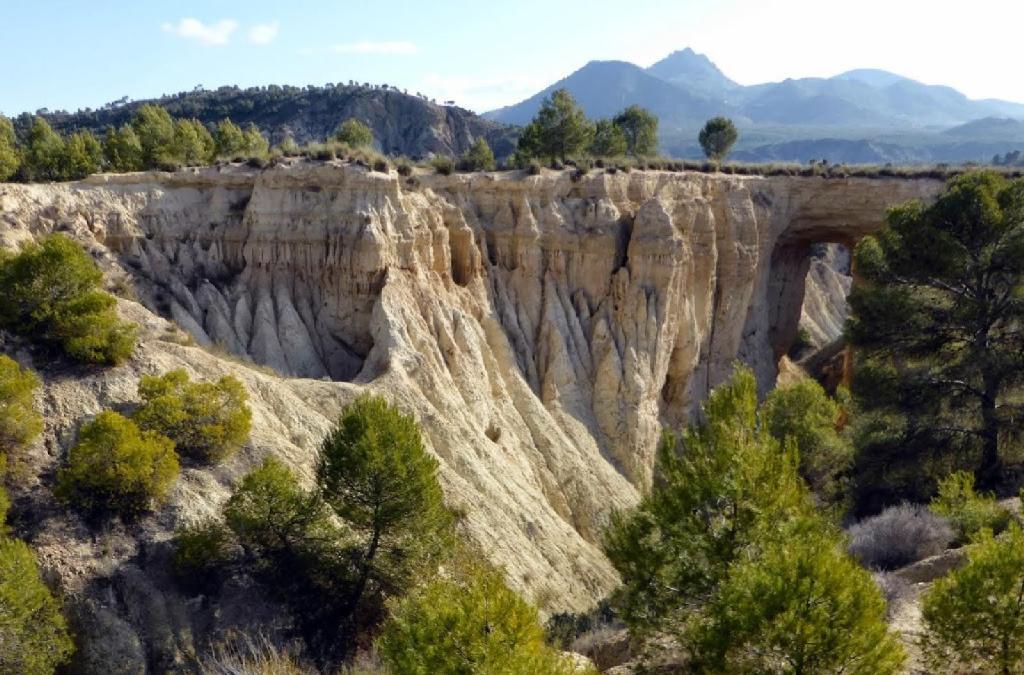 Estas ramblas tienen el aspecto que tenían hace unos 130 millones de años, cuando eran cuencas sedimentarias marinas que quedaron así al bajar el nivel del mar. El terreno está compuesto por sedimentos marinos de arenisca dura y limos blandos que no llegaron a convertirse en roca. La arenisca soportó la erosión del agua encauzada en la rambla, mientras que los limos fueron perforados dando lugar al puente de tierra. Este paisaje de barrancos o ramblas en forma de cárcavas recibe el nombre de Bad-lands y son provocadas en estos suelos esqueléticos de elevada densidad de drenaje por las precipitaciones distribuidas irregularmente en el tiempo. Resumiendo, estamos ante unas tierras muy erosivas y erosionables que pertenecen al Triásico y que conforman un espectacular paisaje.