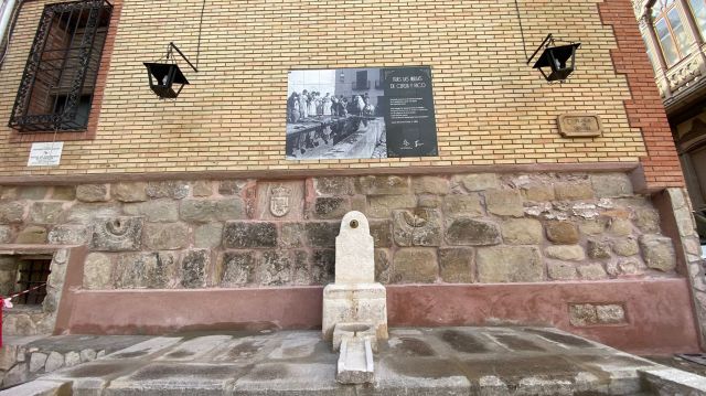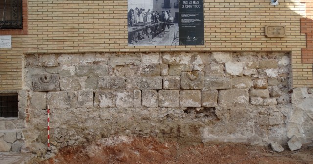 Una vez que la nueva corporación municipal se marcó como objetivo prioritario la preservación y recuperación del patrimonio, hecha la advertencia y pese a las lógicas dudas iniciales, personal municipal realizó una cata en esta fachada para comprobar que efectivamente había sillares de piedra tras el revestimiento de ladrillo visto realizado hace unos cuarenta años. Pero mucho antes, aún en época de Cerdá y Rico ya se taparon estos sillares con un revoco que se encaló tal y como aparece en la famosa fotografía en la que aparece un grupo de mujeres y un hombre a caballo reflejados en las aguas de la fuente.