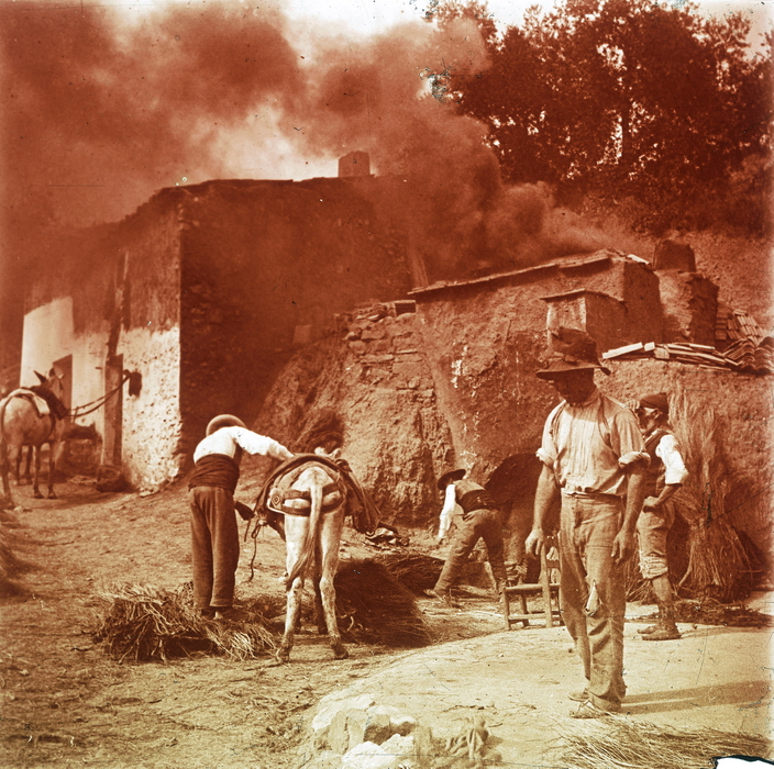 La “Dehesa de las yerbas”, como también es denominada la Dehesa del Guadiana en viejos documentos, seguramente haga honor a otra de sus riquezas, las codiciadas hierbas aromáticas que para la elaboración de perfumes se recolectan aquí. Un territorio históricamente compartido pese a que no faltaron las disputas como la que el concejo de Cabra libró con el marqués de la Garantía, que desembocó en un largo litigio por el que se terminó reconociendo el ancestral derecho de uso de los ganaderos cabrileños. Nuestro viajero llega al lugar donde hará noche, la venta de la Malagueña. La actividad es frenética en torno a su alambique, donde se destila durante las veinticuatro horas del día, ahora que las esencias se pagan tan bien. Otra actividad de aprovechamientos forestales que no escapa a la cámara de nuestro inquieto fotógrafo, quien registra la escena como si fuera un notario.