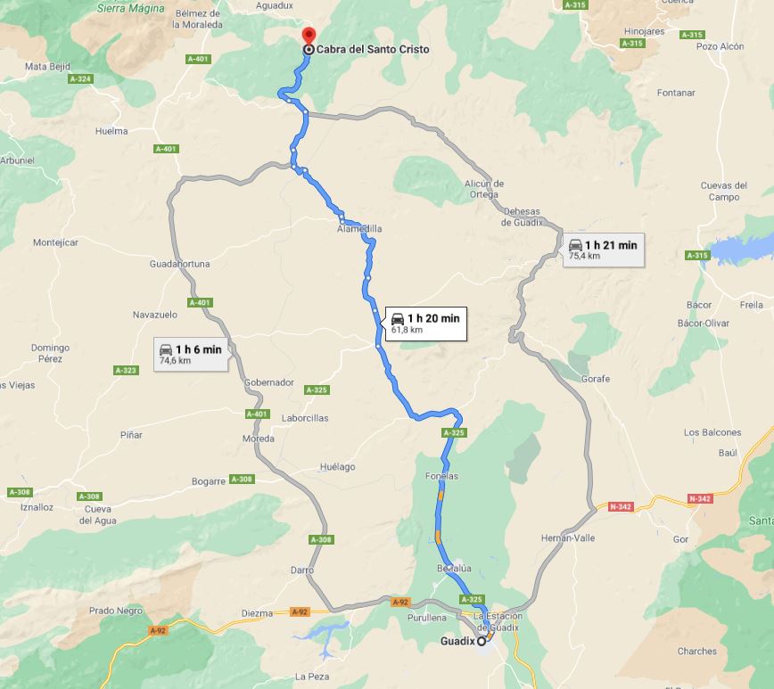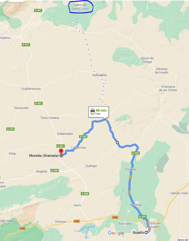 En esta guía se traza el camino entre Guadix y la meseta por la vecina población de Solera. Hemos de tener en cuenta que Cabra era por entonces era una localidad recién repoblada -los primeros vecinos llegaron un año antes- precisamente y entre otros motivos para dar seguridad al camino que por aquí pasaba. A buen seguro no existiría posada aún, ni los caminos que llegaran estarían en buenas condiciones. Tampoco creemos que esto sucediera muy rápido, ya que como hemos visto, tenían que ser costeados por la población y los colonos recién llegados seguro que tendrían otras necesidades más perentorias como la construcción de sus propias casas, roturación de terrenos, regadíos, etc.