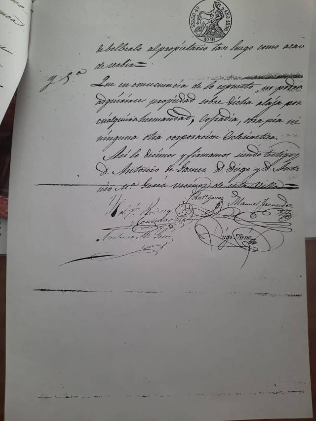 - Don Ildefonso Rodríguez Contreras se reserva para sí y sus herederos la propiedad del marco, que podrán y deberán guardar en su casa abitación.