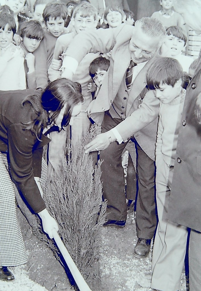 Coincidiendo con la llegada de “los tecnócratas” a la política del Régimen se inician las gestiones para unificar en un mismo centro las diferentes escuelas que aún quedaban repartidas por todo el casco urbano, de tal forma que en 1962 se inaugura el colegio “Arturo del Moral”, que debe su nombre al alcalde del momento, siendo uno de sus principales artífices, aunque algunos maestros como Juan Fernández -primer director del centro- también jugaron un importante papel. No obstante, no se inaugurará oficialmente hasta 1964, coincidiendo con la campaña que conmemoraba los “25 años de paz”. La cámara de Sebastián Moreno recogió muchos de aquellos primeros eventos celebrados en el recién creado centro escolar.